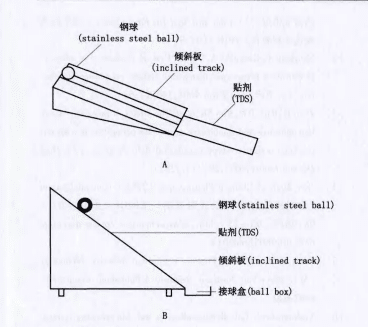 其中我國藥典推行的是滾球法,這是一種較易實施,并可定量評價的方法;此種方法分為平面停止法(tack rolling ball)和滾球斜面停止法(J.Dow method),按藥典要求應采用滾球斜面停止法。