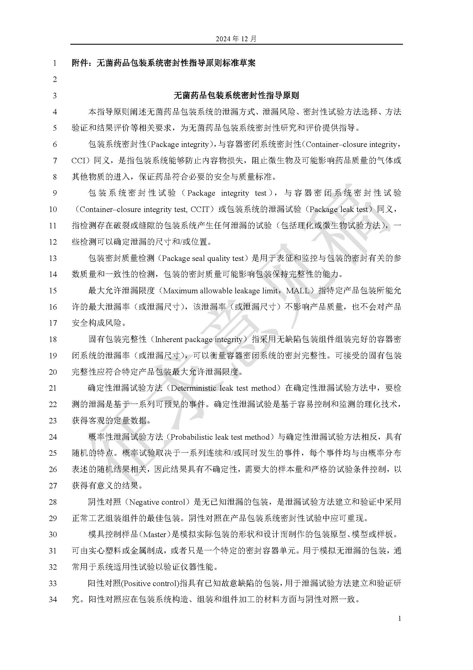 鑒于藥品包裝系統密封性的研究與評價對無菌藥品的安全性保障極為重要,藥典委組織制定了無菌藥品包裝系統密封性指導原則(征求意見稿)。為確保標準的科學性、合理性和適用性,在前期公示和征求意見的基礎上,擬對無菌藥品包裝系統密封性指導原則及所附方法再次征求社會各界意見(詳見附件)。征求意見期為自發布之日起三個月。
